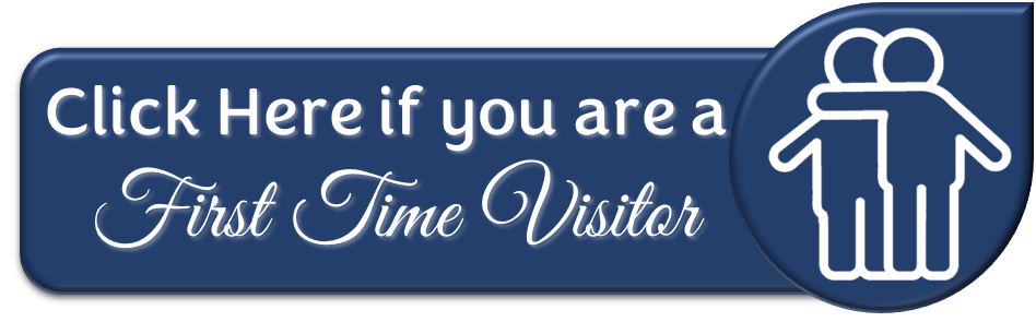 A blue rectangular sign with white text that says, 'Click Here if you are a First Time Visitor,' and features an icon of two outlined people with their arms around each other.